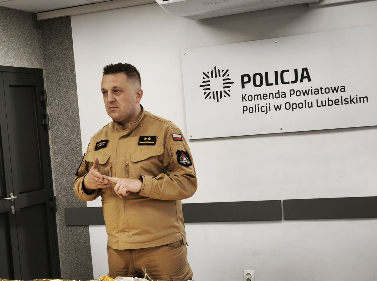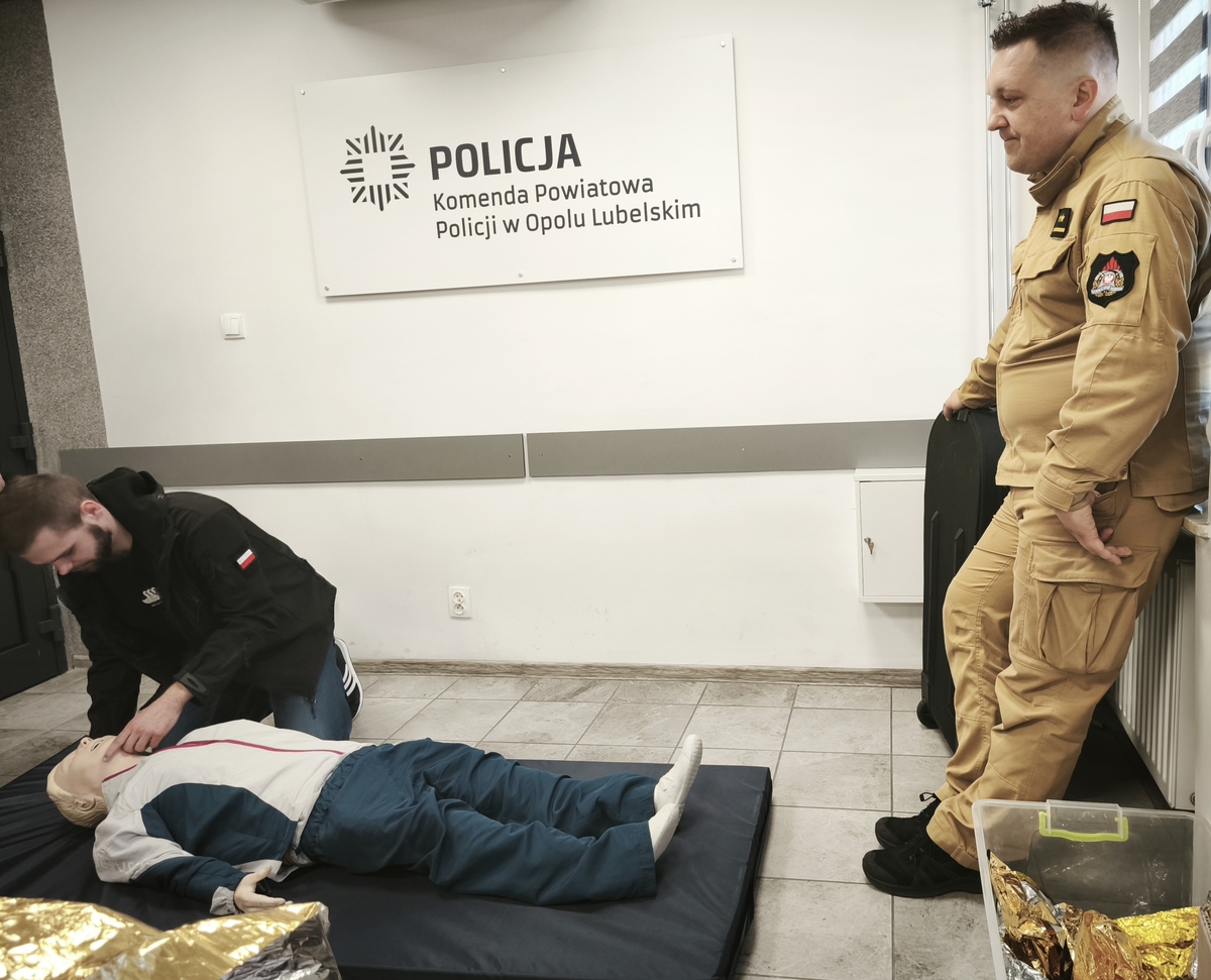 Wiemy też jak ważna jest szybka reakcja i właściwa ocena sytuacji dlatego też regularnie doskonalimy swoje umiejętności w zakresie udzielania pierwszej pomocy przedmedycznej. Wczoraj szkolenie takie odbyło się w budynku Komendy Powiatowej Policji w Opolu Lubelskim pod okiem Powiatowego Koordynatora Ratownictwa Medycznego w Opolu Lubelskim mł. kpt. Stanisława Kameli, który jest również funkcjonariuszem PSP w Opolu Lubelskim.