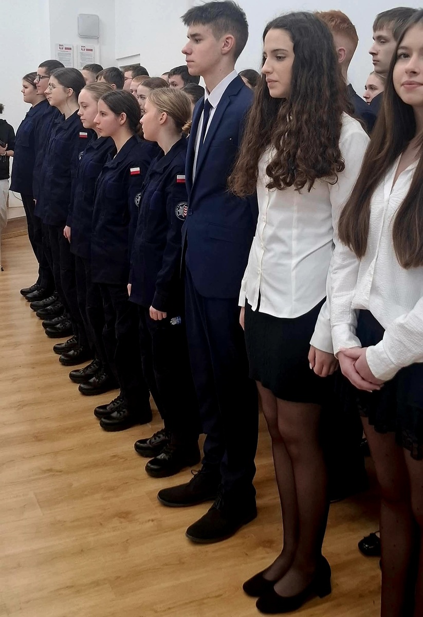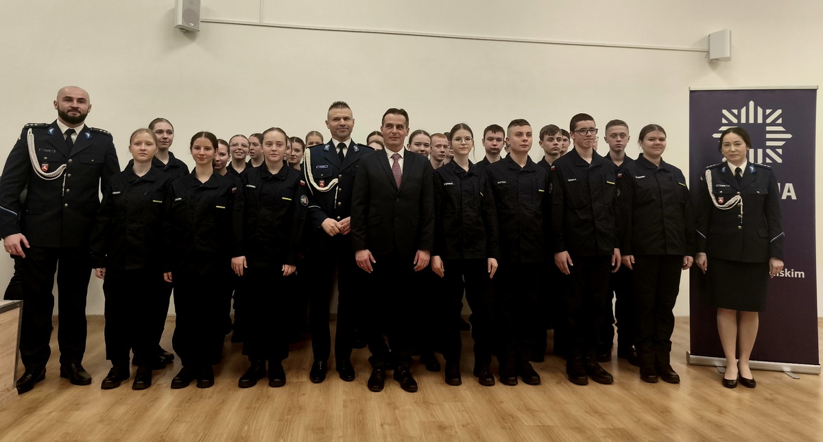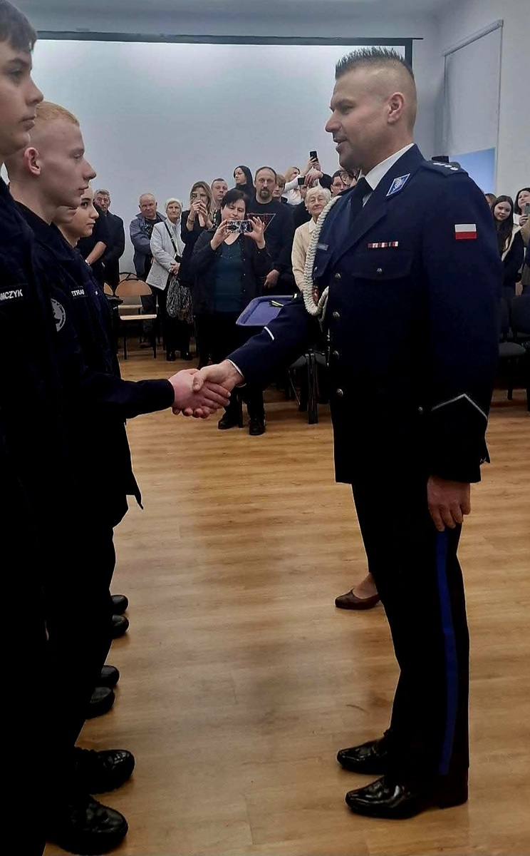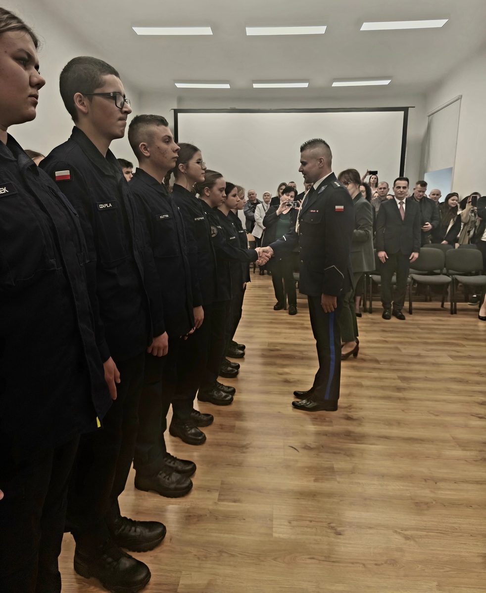 W uroczystości udział wzięli przedstawiciele władz samorządowych i służb mundurowych współpracujących na co dzień z uczniami i kadrą szkoły w Opolu Lubelskim. Dyrektor Liceum Ogólnokształcącego Pani Monika Ptasińska-Romanowska powitała wszystkich gości. W tak ważnym dla Szkoły dniu nie mogło zabraknąć również przedstawicieli Policji. W uroczystości opolską jednostkę Policji reprezentował Komendant Powiatowy Policji w Opolu Lubelskim nadkomisarz Jarosław Kurczak. W wydarzeniu uczestniczyli koordynatorzy oddziałów o profilu mundurowym z ramienia Policji i Szkoły jak również policjanci prowadzący zajęcia z uczniami i wychowawcy klas. Pan Komendant po uroczystych słowach roty wypowiedzianych przez uczniów oddziału o profilu mundurowym pogratulował i wręczył kadetom symboliczne naszywki.