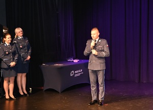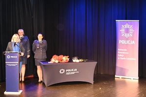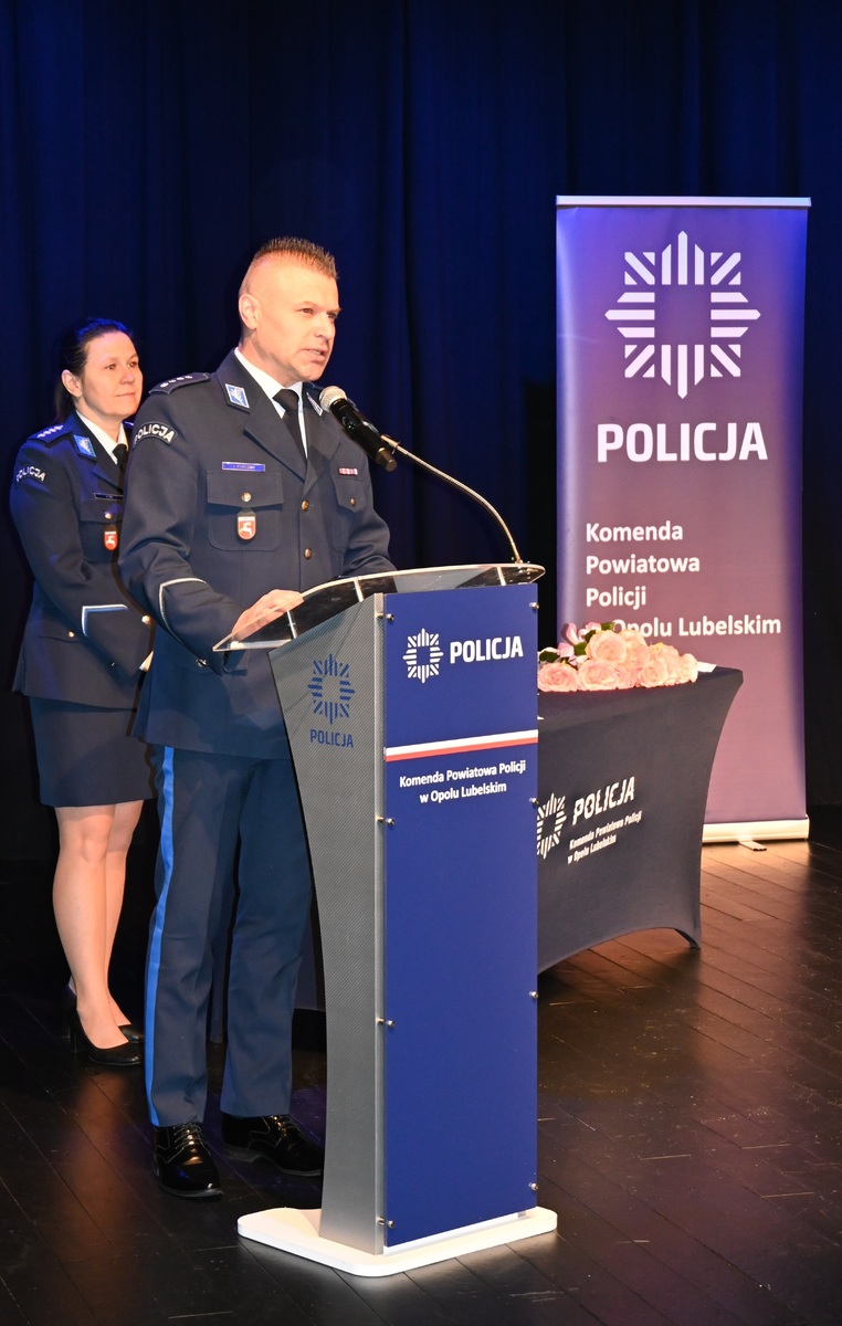 Głos zabrała również Pani Joanna Stec -Trzpil - Przewodnicząca Komisji Krajowej Związku Zawodowego Pracowników Policji, która podkreśliła, że praca Pracowników Policji ma znaczenie dla sprawnego funkcjonowania Policji. Pracownik cywilny choć nie nosi munduru, każdego dnia też służy Państwu Polskiemu. Podziękowania w kierunku pracowników cywilnych skierowała również Pani Justyna Głogowska – Przewodnicząca Związku Zawodowego Policji w Komendzie Powiatowej Policji w Opolu Lubelskim oraz Pan Bogusław Gorzym – Prezes Koła Stowarzyszenia Emerytów i Rencistów Policyjnych w Opolu Lubelskim.