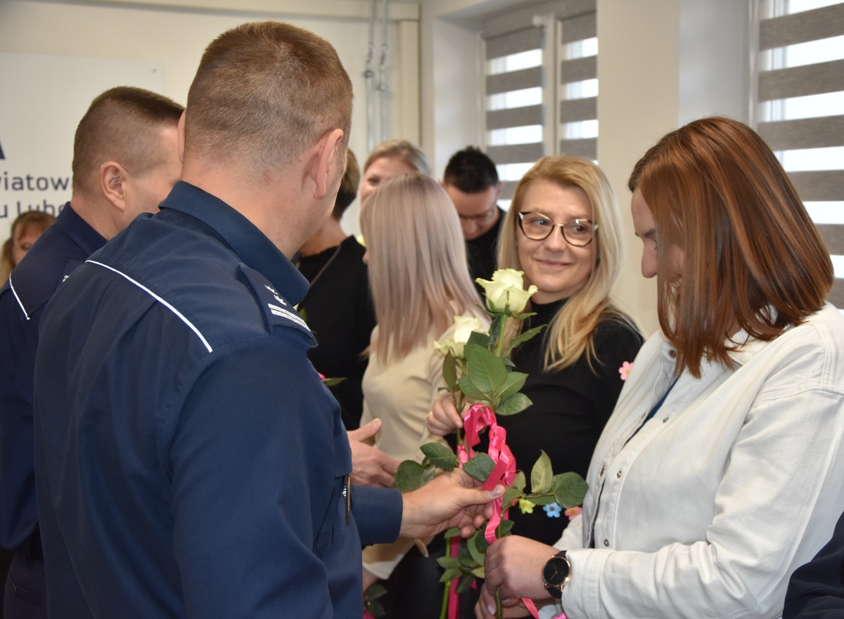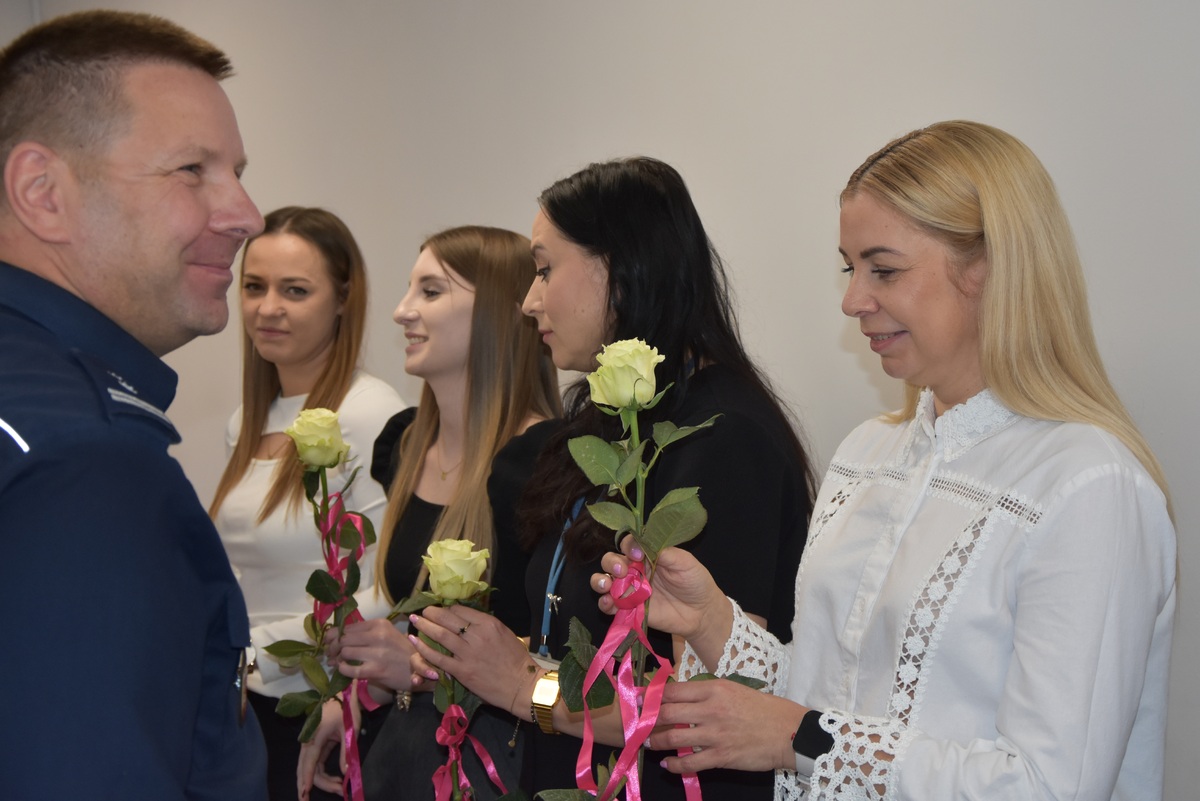 Nie zabrakło również symbolicznego gestu. Wszystkie panie otrzymały z rąk Pana Komendanta kwiaty, którym towarzyszyły życzenia zdrowia, pomyślności w życiu zawodowym i prywatnym oraz wielu powodów do satysfakcji z pełnionej służby i pracy.