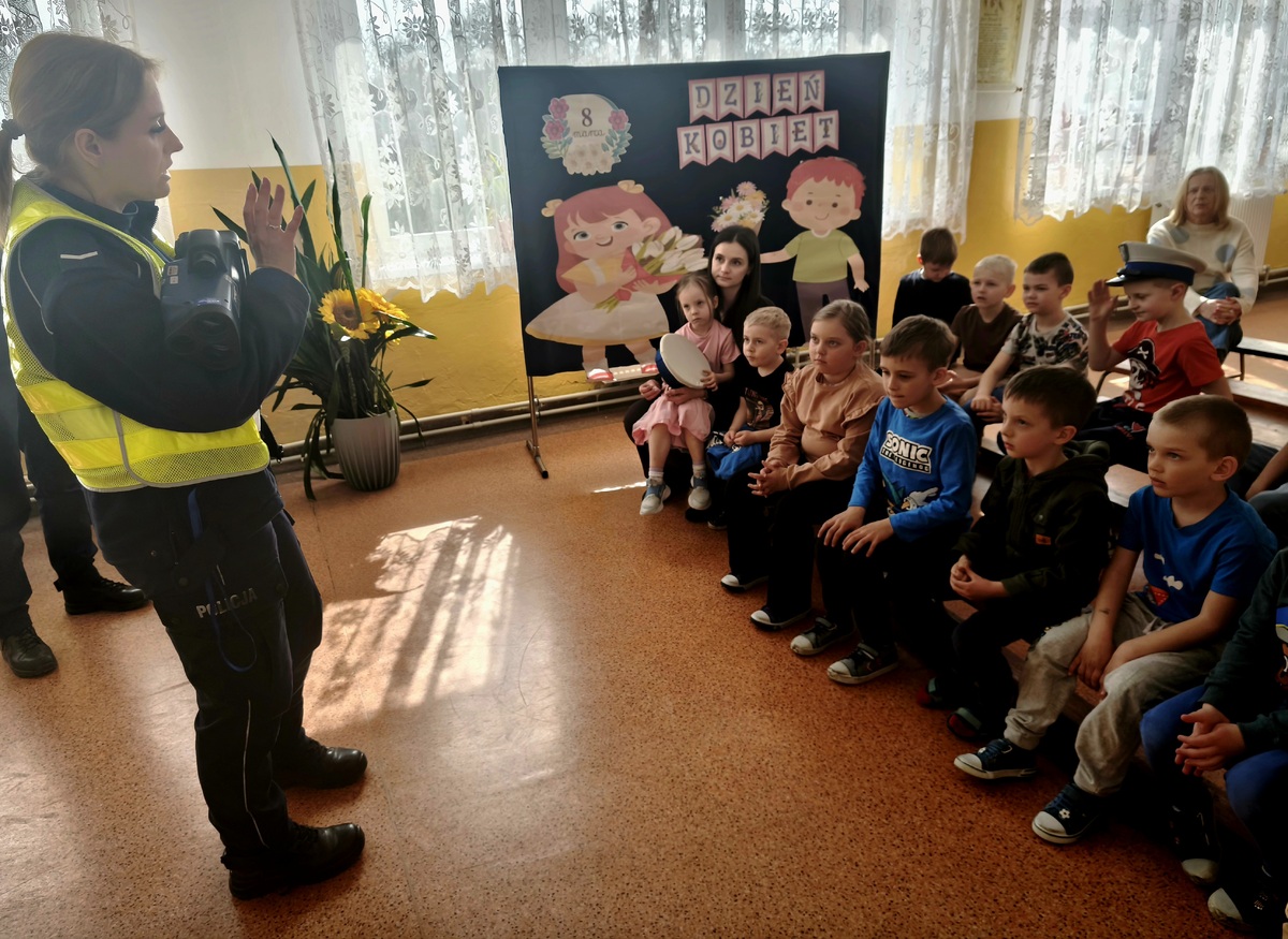 Spotkanie z najmłodszymi odbyło się w obchodzonym tego dnia w szkole Pierwszym Dniu Wiosny. Policjantki na zakończenie spotkania zaprezentowały dzieciom policyjny radiowóz, za kierownicą którego mogli zasiąść najmłodsi uczestnicy spotkania. Na zakończenie prelekcji na dzieci czekała niespodzianka, wszystkie otrzymały niebieskie balony z logo opolskiej komendy i odblaskowe misie, aby być bardziej widocznym na drodze.